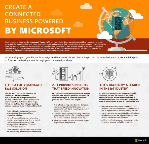 In this infographic, you’ll learn how Microsoft IoT Central meets all of these requirements while delivering an intuitive and highly customizable UI that can and will adapt to your business, not the other way around.