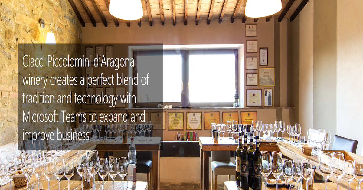 For three generations, the Bianchini family has been creating exceptional wines on their idyllic estate, maintaining the traditions of a historic estate while staying one step ahead of the latest developments in the world of wine. With the recent COVID-19 pandemic and trade shows postponed and international travel impossible, everything changed. The Ciacci winery responded by turning to Microsoft Teams. To keep the business thriving, they moved quickly to replace in-person gatherings with virtual wine tastings using Teams meetings. Family members also used Teams to work together and connect with partners and suppliers, making the adjustment a perfect balance of tradition and technology.