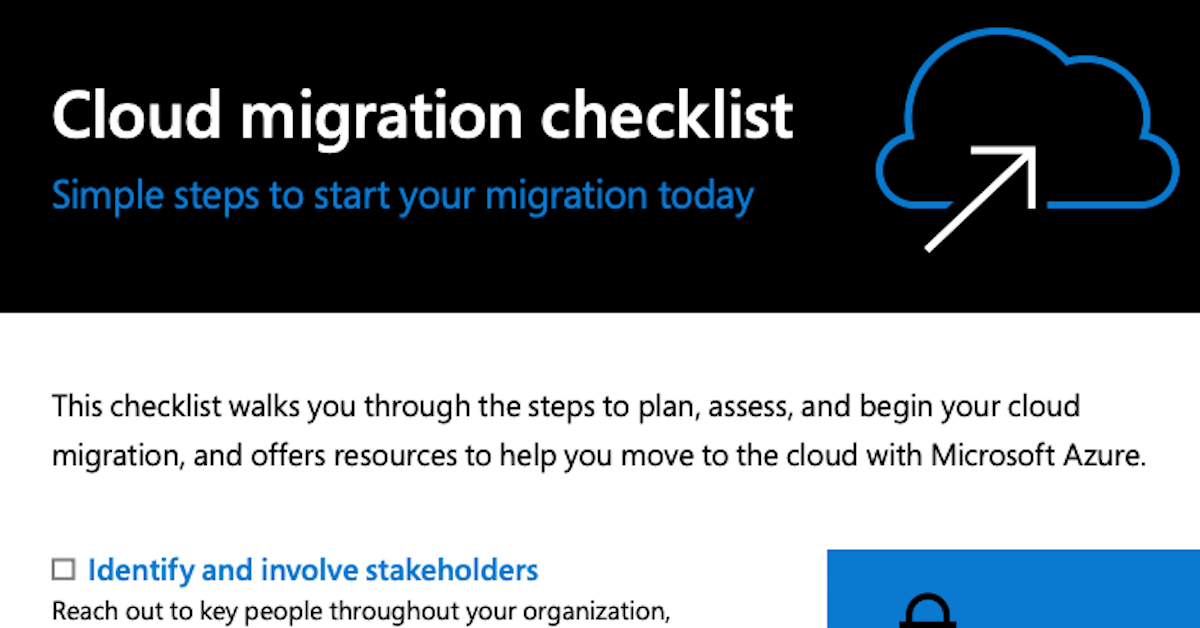 This migration checklist provides easy, step-by-step guidance on the tools, planning, and resources you’ll need to migrate your apps, data, and infrastructure to the cloud with confidence—no matter where you currently are in the process.